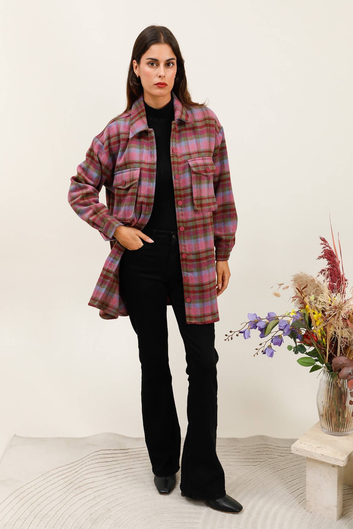 💬 Style-Tipp: Trage das Daphbe Overshirt offen mit einem Rollkragenpullover und Chunky Boots – fertig ist dein effortless Street-Style mit dem gewissen „Etwas".