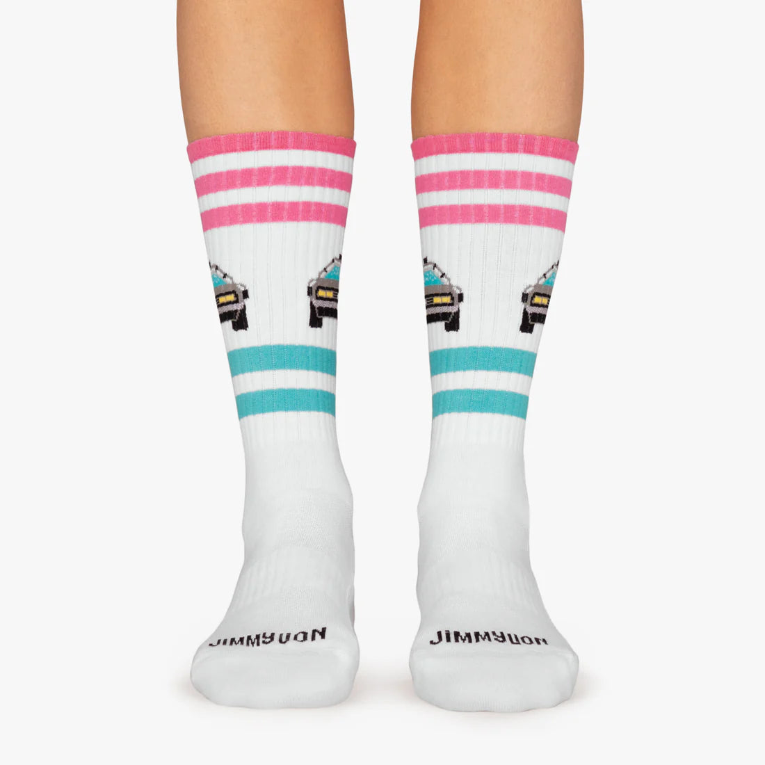 Entdecke mit diesen außergewöhnlichen Socken die Welt des beliebten amerikanischen Films „Zurück in die Zukunft“ von Robert Zemeckis und reise wie Marty McFly im DeLorean durch die Zeit. Mit diesem unglaublichen, zeitlosen Design, das zu deinen besten Outfits passt, geht es zurück in die 80er. Schnalle dich an, der DeLorean startet gleich!