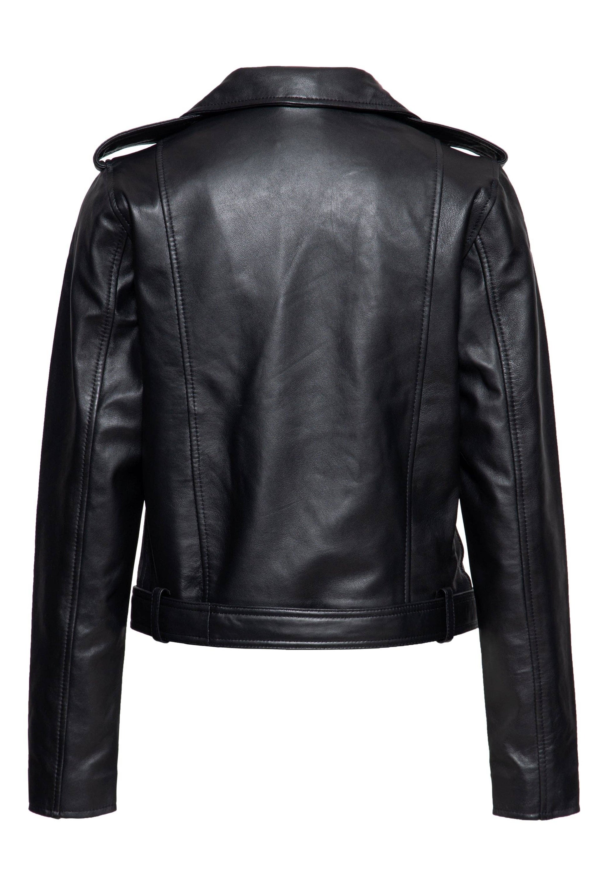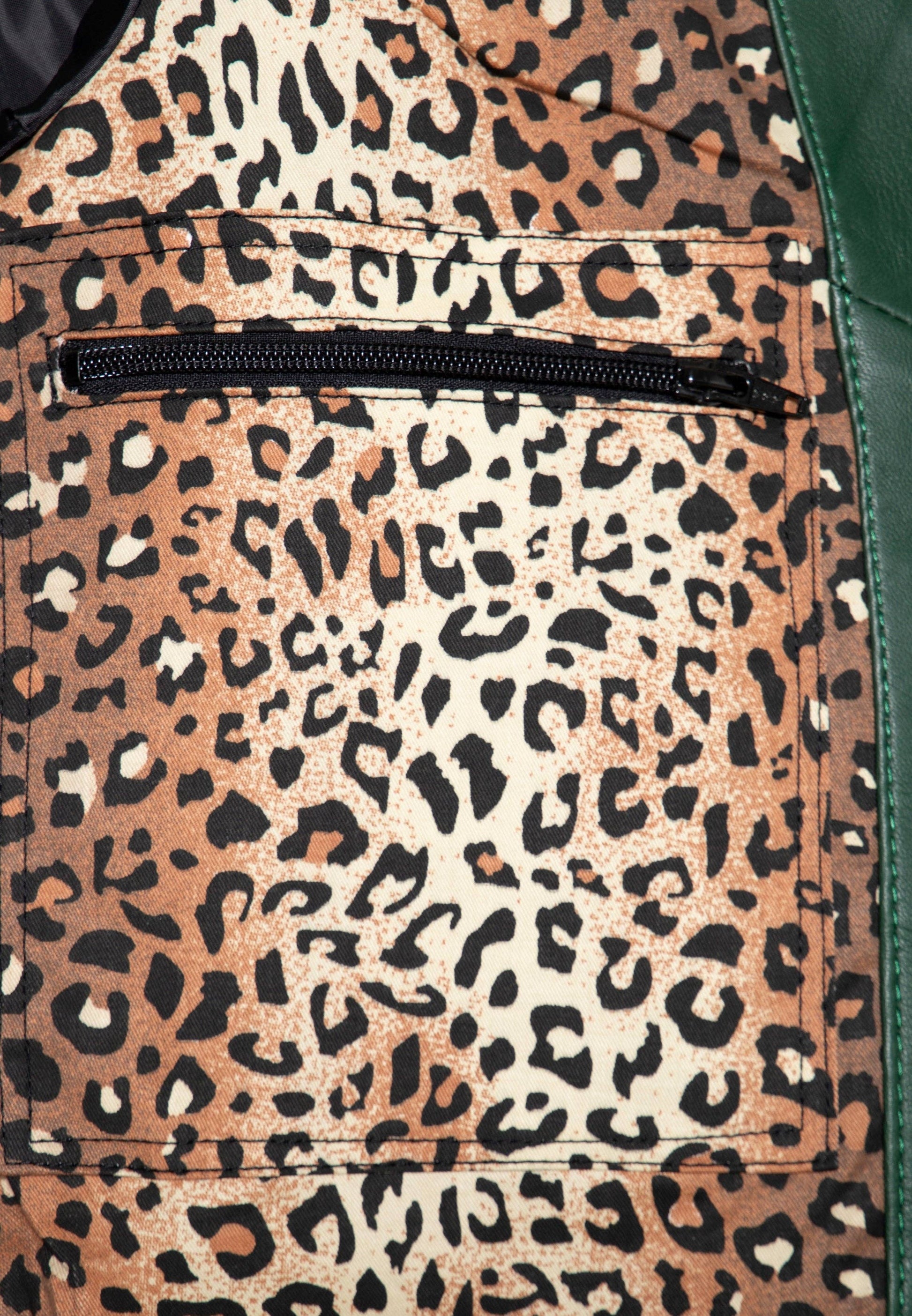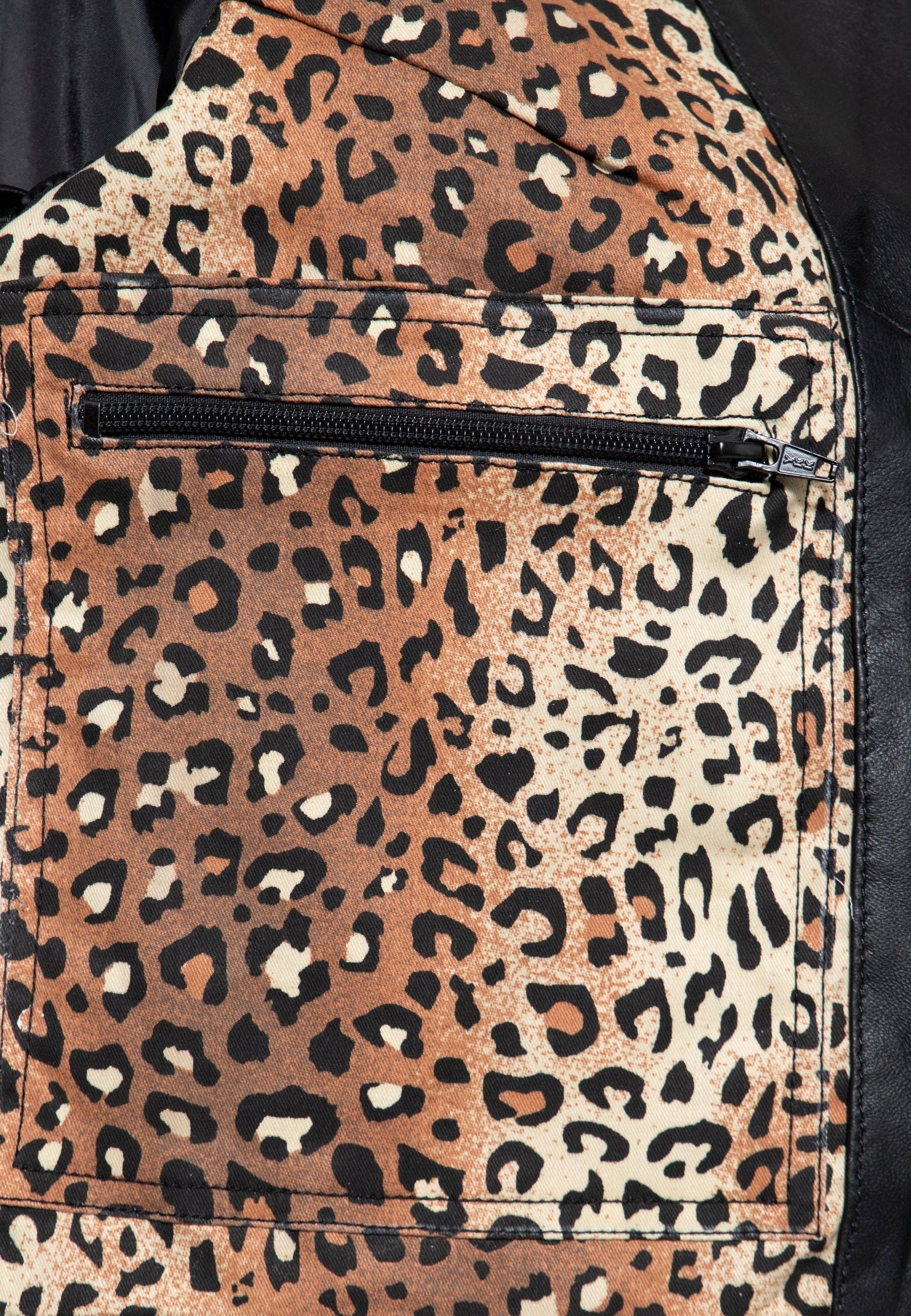 Hol dir den ultimativen Rock'n'Roll-Flair ohne Kompromisse bei Stil und Komfort mit unserer neuen Lederjacke aus der Frühjahr/Sommer Kollektion. Inspiriert von der rebellischen Attitüde der 50er, bringt die Marlon Biker Jacke aus 100% echtem Leder, den unverwechselbaren Look der Biker-Welt in deinen Kleiderschrank – mit einem modernen Twist. Eleganz trifft auf Wildheit: Mit ihrem vollständigen Baumwoll-Futter im Leo-Look ist diese Jacke nicht nur ein modischer Blickfang, sondern auch angenehm zu tragen. Der spitzer Kragen mit Druckknöpfen, der klassische Reißverschluss und der Gürtel verleihen der Jacke ihren charakteristischen Biker-Look.