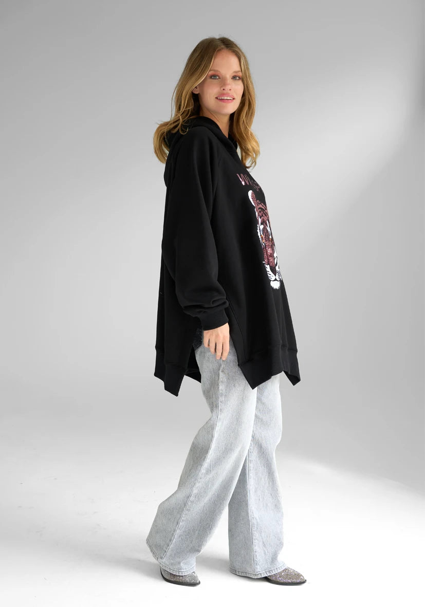 Der Miss Goodlife Oversize-Hoodie „Wild Spirit“ bringt Power, Personality und eine ordentliche Portion Glam in deinen Look. Der große, funkelnde Tiger-Print auf der Front ist ein echter Eyecatcher und transportiert genau die Energie, für die Miss Goodlife steht: mutig, frei, selbstbewusst.