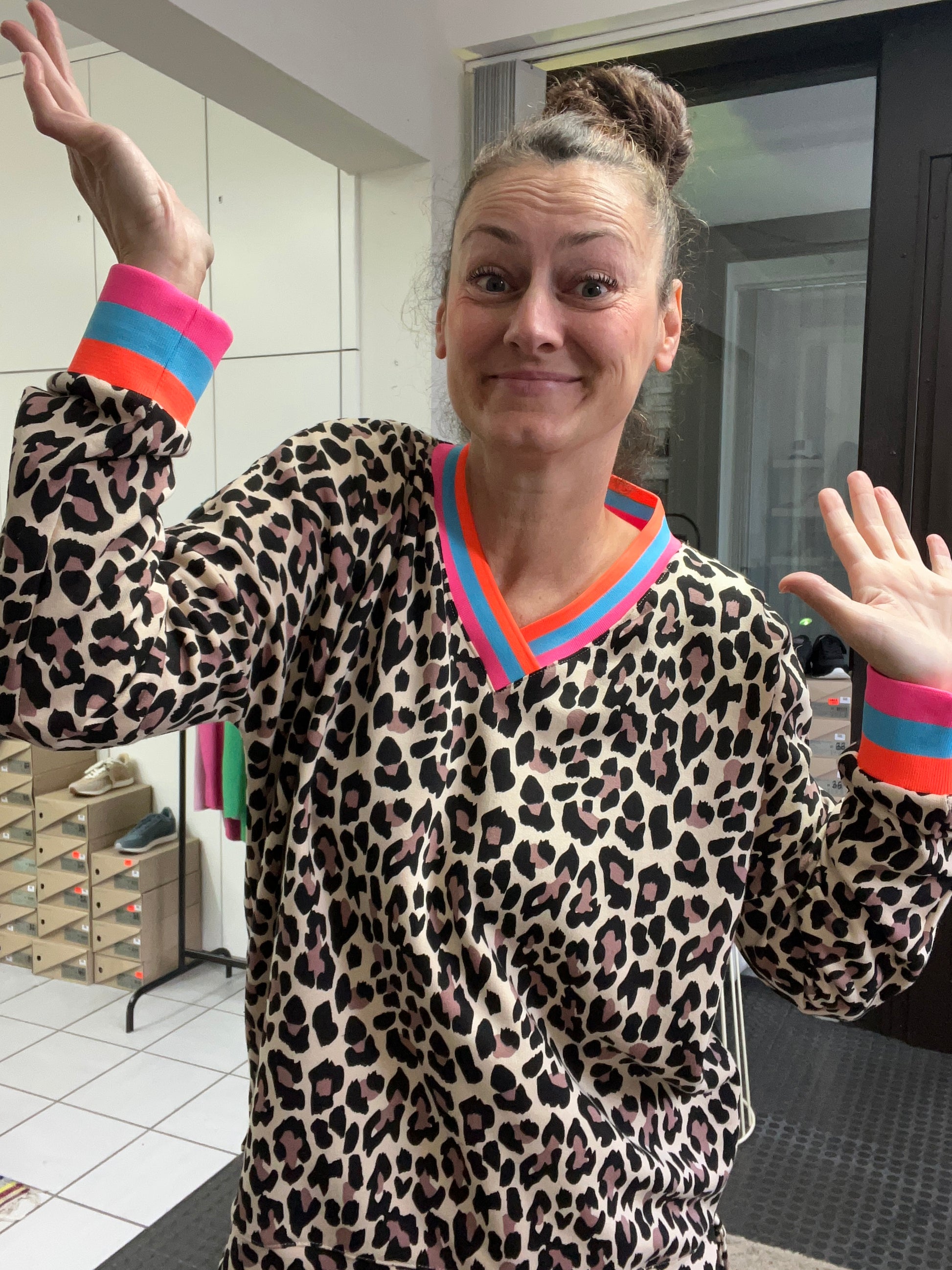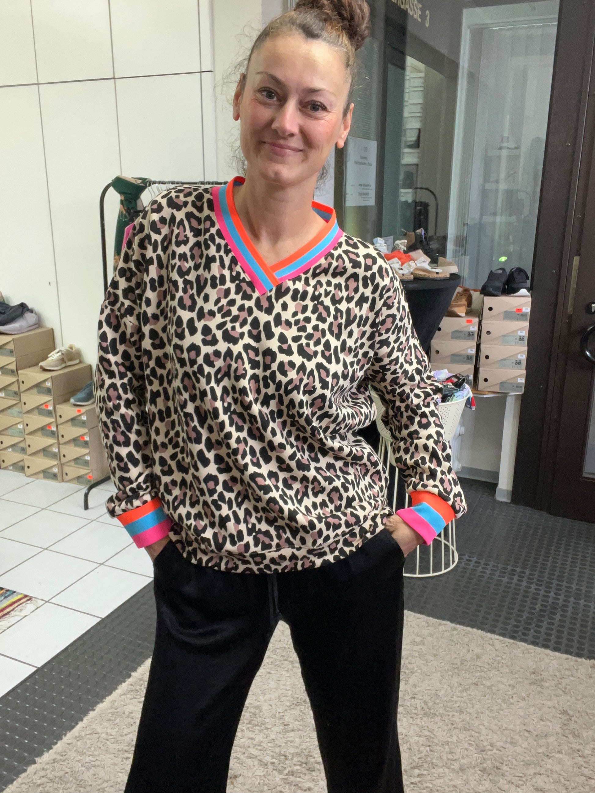 Das Sweatshirt "Leo Allover Neon Kante" kombiniert angesagten Leoprint mit auffälligen Neon-Details – ideal für trendige, moderne Alltagslooks.