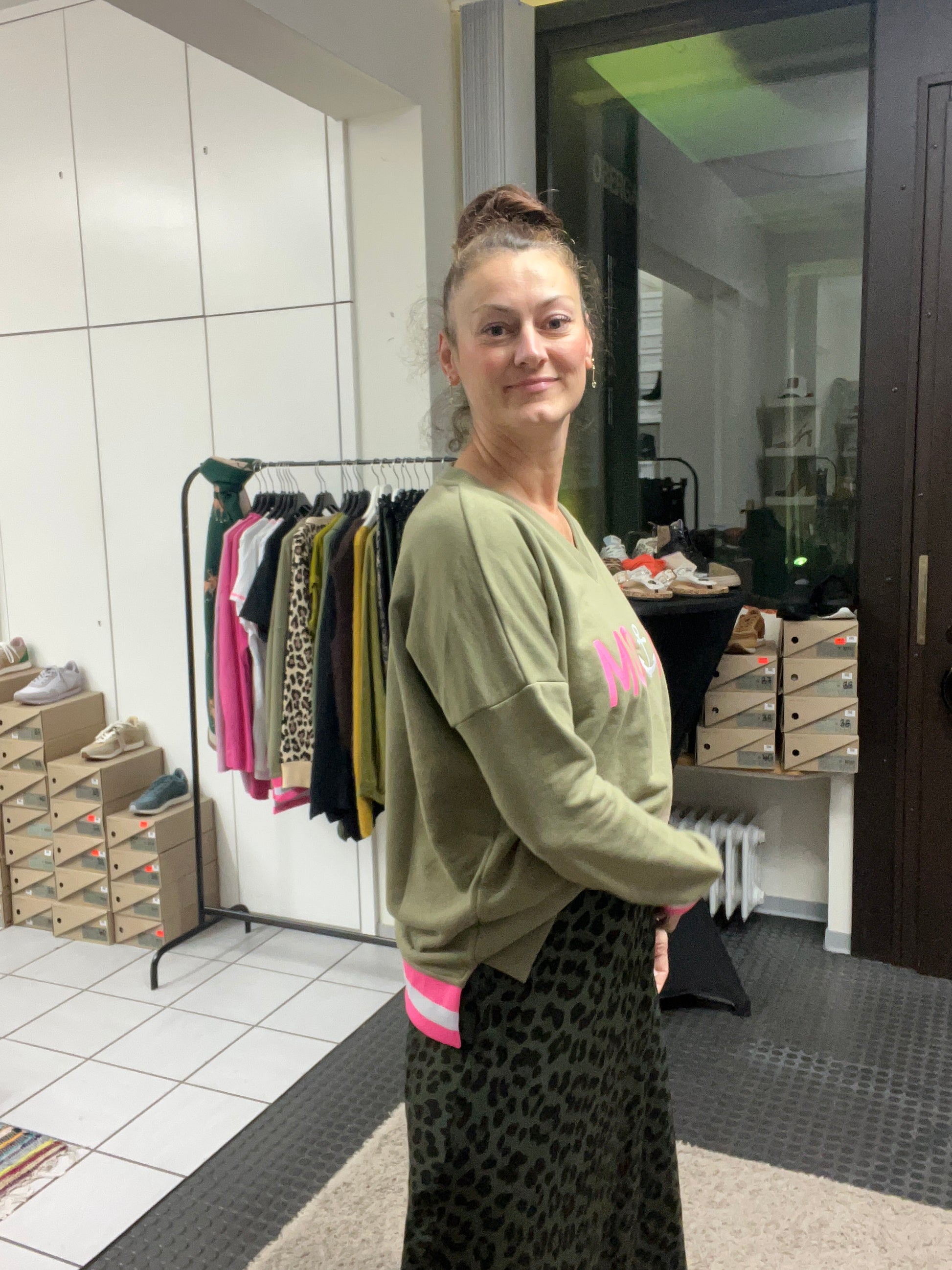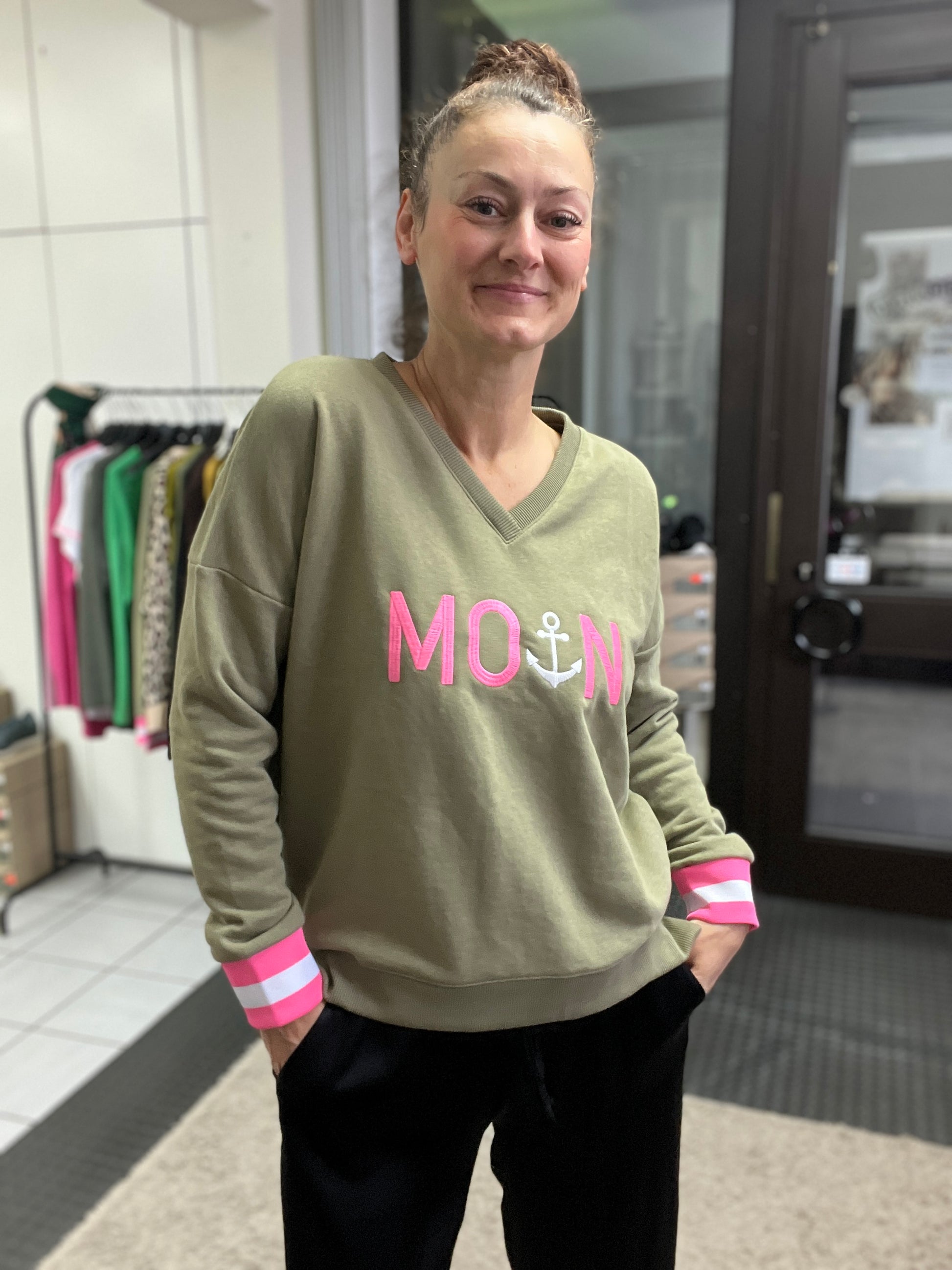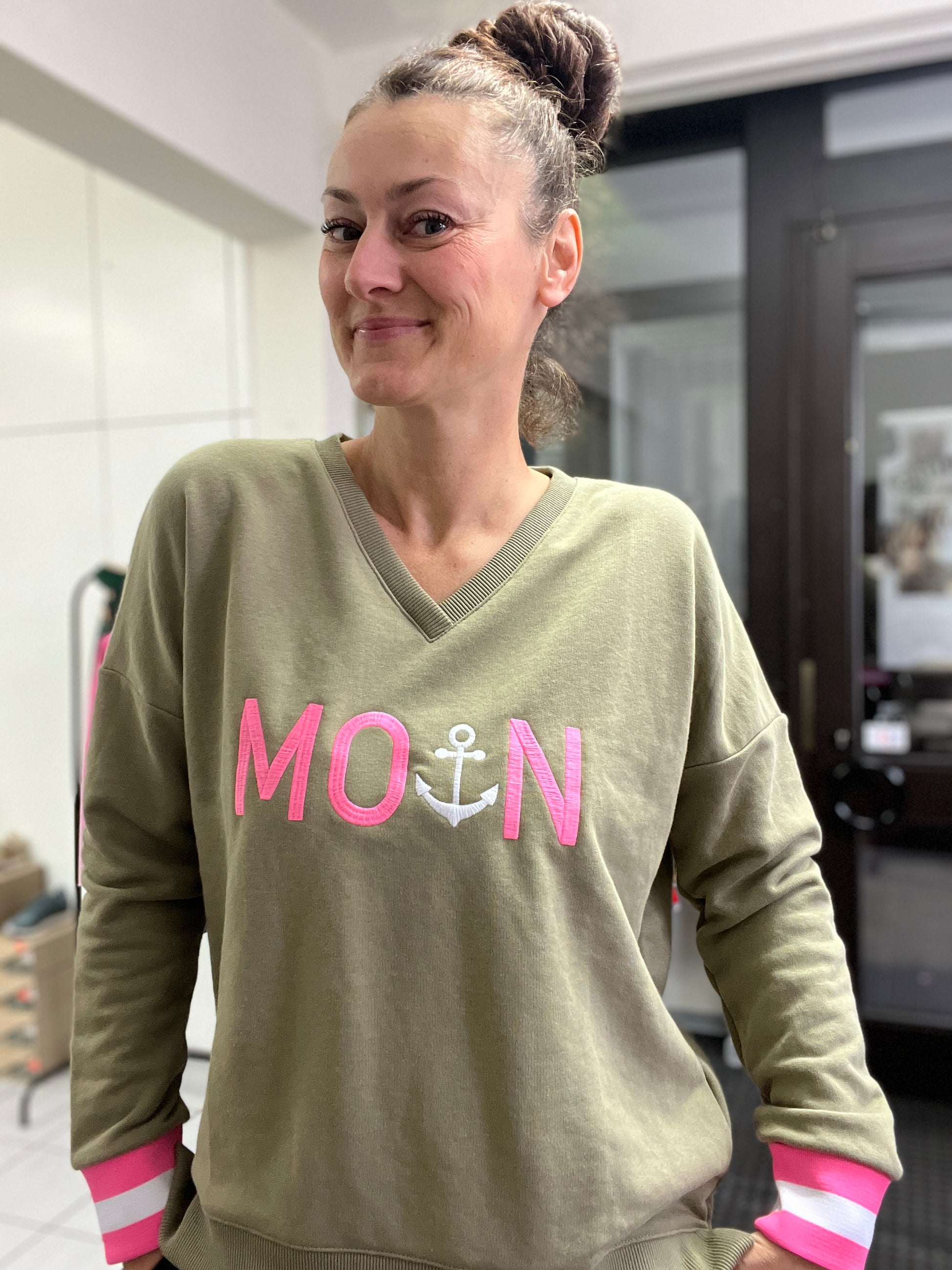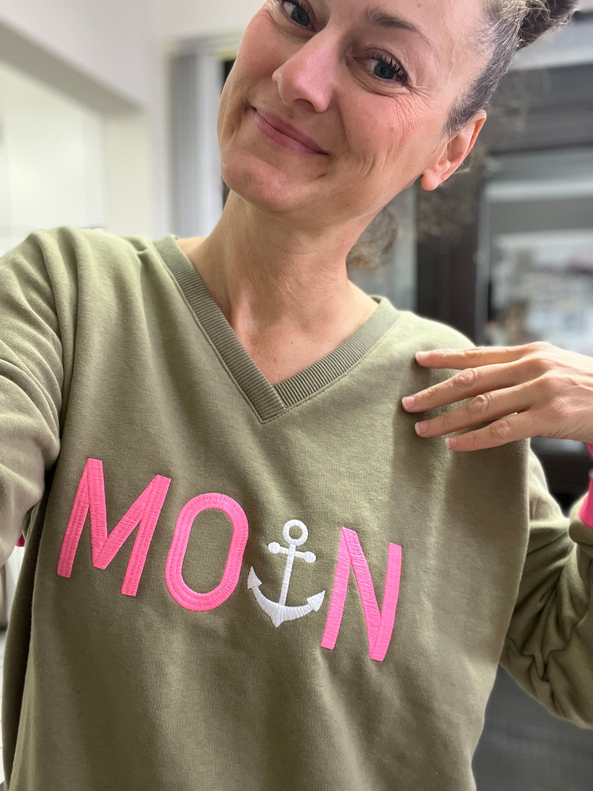 Zwillingsherz V-Neck Sweatshirt mit "Moin"-Stickerei